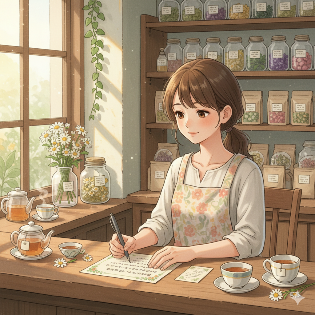 以前の私は、ただ「カモミール、リンデン、ラベンダー…」と材料を書き連ねるだけでした。でも、今の私には、伝えなければならない物語がありました。